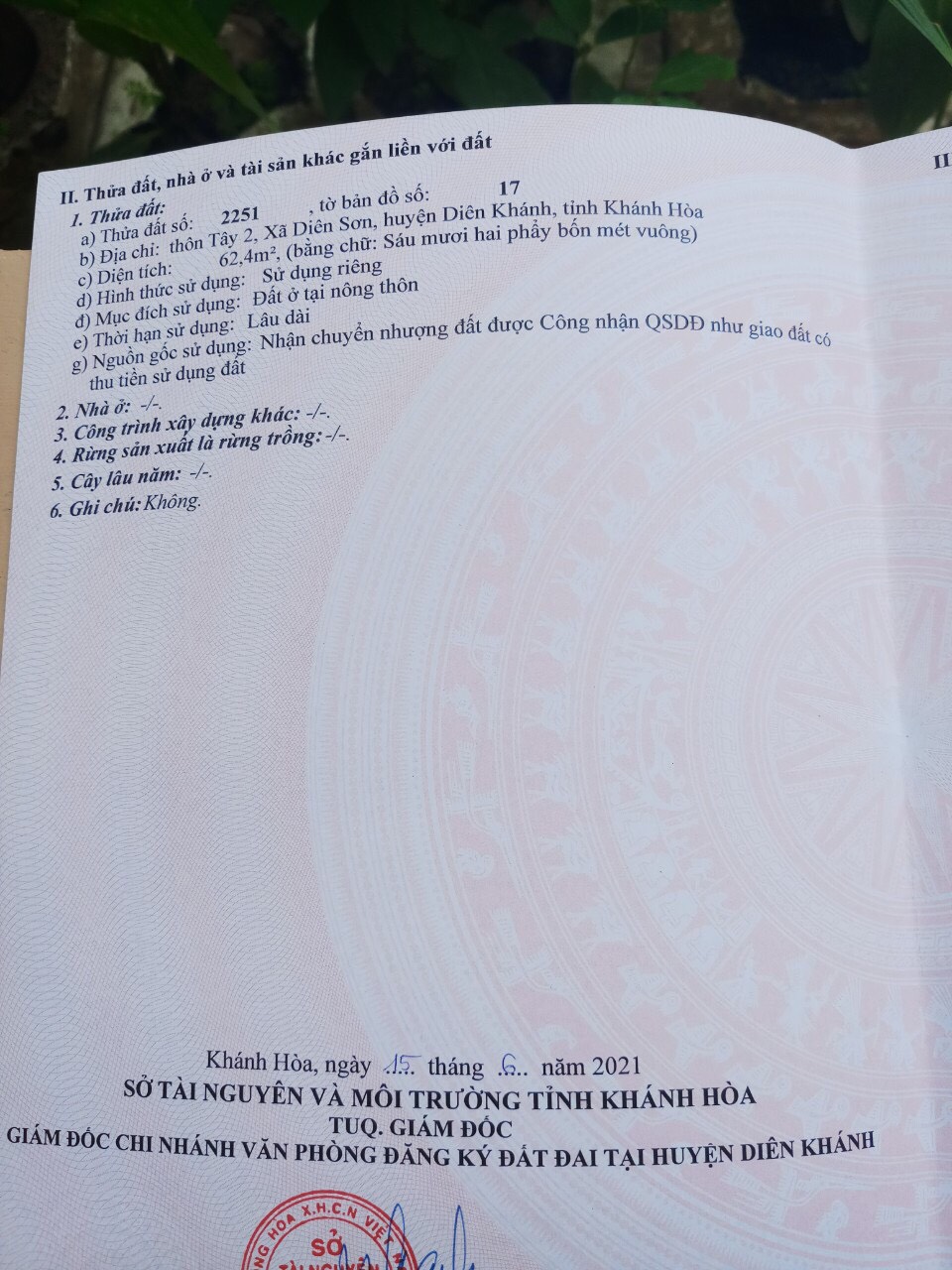Đất diên sơn, diên khánh 62,4m2 (DK358)