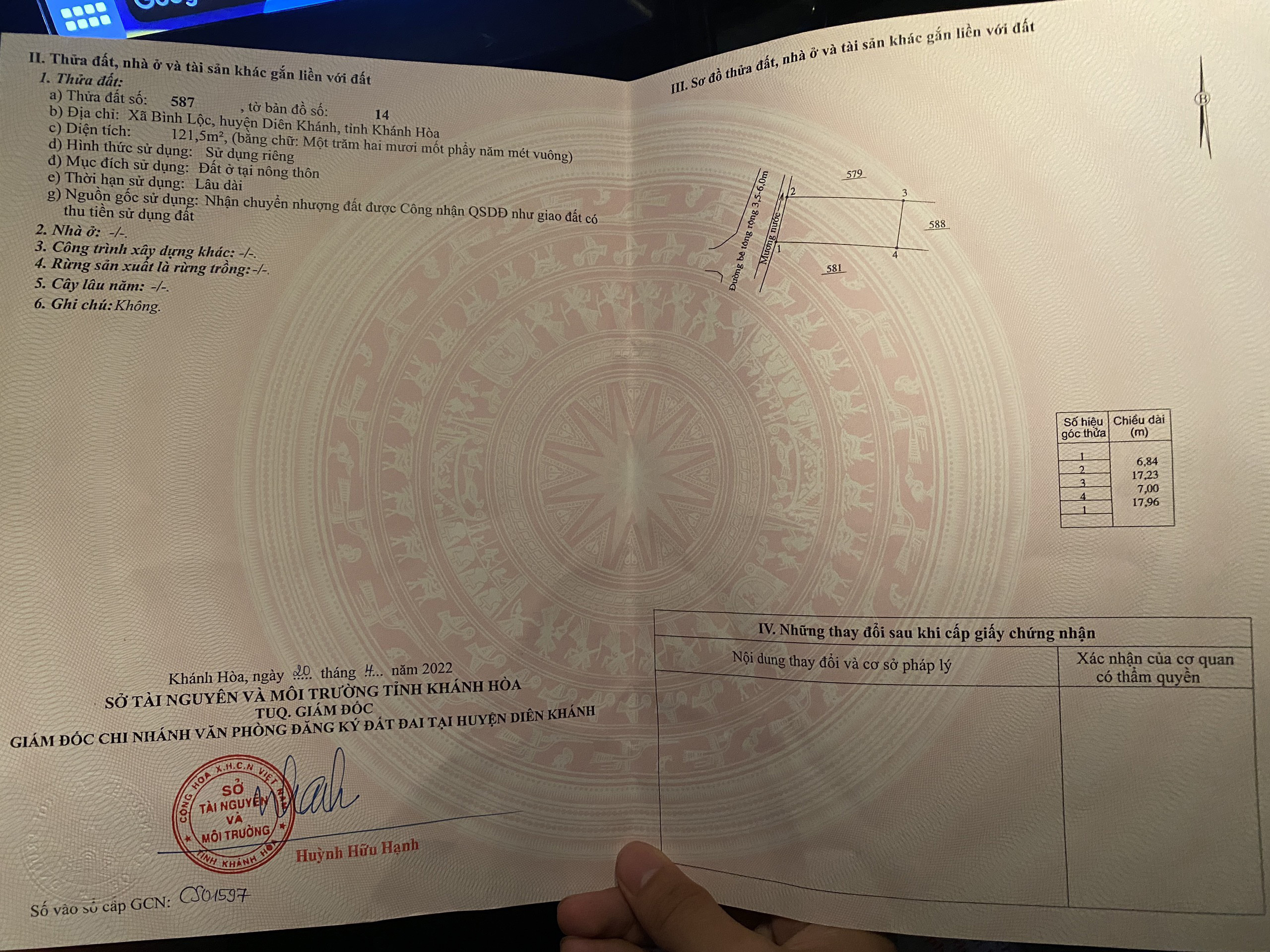 ĐẤT BÌNH LỘC Diên Khánh 121,5M2 (DK162)